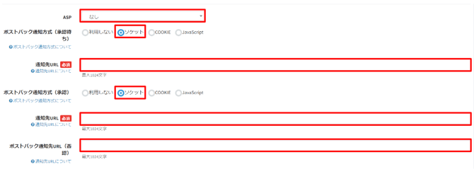 ※ポストバックURLが承認待ち、承認、否認の3種類が出てきた場合、管理画面で以下のように設置してください。