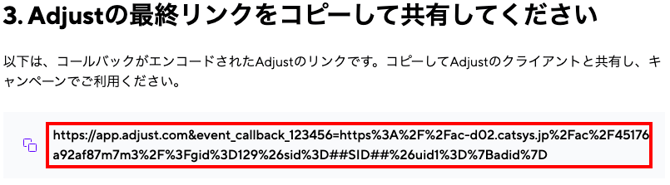 CATSに設定をするAdjustリンクにパラメータを追加して設定を行う必要がございます。