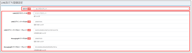 ・LINEアカウント名:ログに表示されます。どのLINEアカウントか分かるようにご登録ください