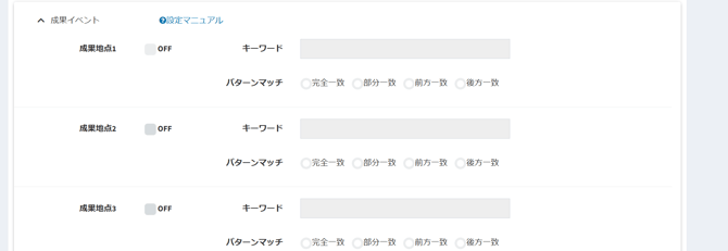 ※Lステップ利用時は、「完全一致」は利用しないようお願いします。Lステップの仕様により「完全一致」は成果判定ができません。