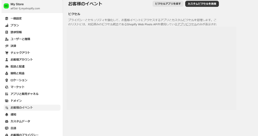 Shopify ピクセルで成果を計測する場合、カスタムピクセルを利用して計測を行う必要がございます。