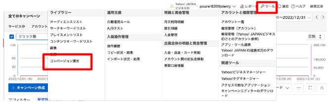 ②ツール>ライブラリ>コンバージョン測定を選択します。